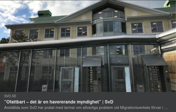 https://www.svd.se/a/dwpzMo/migrationsverkets-forvar-i-molndal-personal-larmar?fbclid=IwAR3qZfgo9Zky1X-NkaLeDrm07DXtL_lK6fD2oMhR4x6TwqUhRDvDTuSIuB0 "Anklagelser om trakasserier, rasism och tjänstefel avfärdas regelmässigt av cheferna på Migrationsverkets förvar i Mölndal utanför Göteborg, enligt flera i personalen som SvD pratat med. Det är kritik som delvis fanns med i en JO-granskning nyligen, och som nu förstärks. Hård kritik riktas direkt mot ledningen som enligt de anställda mörkar påstådda brister. Det talas om en utbredd tystnadskultur och en rädsla hos såväl anställda som förvarstagna. Ledningen är samtidigt överens med de anställda som SvD talat med att det länge funnits problem vid förvaret – ett låst boende som Migrationsverket ansvarar för, och där personer med utvisningsbeslut placeras om de inte återvänder frivillig. En tidigare anställd på förvaret i Mölndal berättar att hen vid ett tillfälle skickade en rutinmässig incidentrapport till en chef på förvaret, efter att en kollega sade sig ha utsatts för sexuella trakasserier. Chefen föreslog att de skulle boka ett möte och den anställda instämde. Sedan blev det tyst. – Jag fick aldrig ett svar tillbaka om när vi kunde prata om detta. I min värld är sådana saker jätteallvarliga, berättar personen som senare valde att lämna arbetsplatsen. Liksom flera andra vill personen inte framträda med namn. En annan före detta anställd berättar att hen ska ha blivit utsatt för rasism av en kollega, vilket enhetschefen larmades om. Men när de väl hade ett samtal ville chefen plötsligt avsluta och sa att de skulle ”ta det en annan gång”. – Men det blev aldrig en annan gång. Hon gick ut och jag satt kvar där en stund. Jag bara grät och grät, berättar den anställda. – Det är en så pass stor tystnadskultur på arbetsplatsen att man inte kan uttrycka sina problem. Flera anställda berättar att de har blivit tillsagda att avstå från att dokumentera vissa skriftliga klagomål och samtal med de förvarstagna – trots att det ingår i Migrationsverkets serviceskyldighet, enligt förvaltningslagen. – Jag har aldrig varit med om något liknande förut. Sättet man styr förvaret på, det är helt ofattbart att detta är en statlig myndighet. Det är en havererande myndighet, säger en anställd. I JO:s protokoll från en inspektion av förvaret i Mölndal framkommer bland annat brister i personalens utbildning och att vissa anställda inte fullt ut behärskar svenska. I januari gjorde Justitieombudsmannen (JO) en oanmäld inspektion av förvaret i Mölndal. Myndigheten anmärker bland annat på brister i personalens utbildning och att vissa anställda inte fullt ut behärskar svenska. Det bekräftas av de anställda som SvD har pratat med. – Jag har varit tvungen att använda vårt hemspråk för att kommunicera med vissa, berättar en före detta anställd. – För några år sedan när man skulle omorganisera så sa man det öppet. Min chef sa till mig att ”vi vill inte ha personer med en masterexamen här”, säger en annan. JO-inspektionen i korthet I JO:s protokoll från inspektionen av förvaret i Mölndal framkommer bland annat brister i personalens utbildning och att vissa anställda inte fullt ut behärskar svenska. Det riktas också kritik vad gäller personalens bemötande av de förvarstagna. – Det är oacceptabelt om personal använder sin överordnade ställning till att hota om tvångsåtgärder eller särbehandla vissa förvarstagna, säger ombudsmannen Per Lennerbrant i ett pressmeddelande. Enligt JO misslyckas förvaret även med att möta det lagstadgade kravet på läkarundersökning, och det finns brister i anpassningen för att ta emot barn. Det riktas också kritik mot förvarets säkerhetsrutiner. Vidare anmärker JO på att personalen i stor utsträckning genomför kroppsvisitationer samt närvarokontroller och så kallad rumsrondering i de förvarstagnas boenderum. Protokollet innehåller även anmärkningar rörande den fysiska miljön, information om rättigheter och rutiner, förvarstagnas tillgång till aktiviteter i förvaret samt om dokumentation av utförd tillsyn. ”Mot bakgrund av de brister som uppmärksammades vid inspektionen och att vissa av dem på ett betydande sätt påverkar situationen för de förvarstagna, avser JO att genomföra en uppföljande inspektion av förvaret”, skriver myndigheten i protokollet. Francisco Carrazana är huvudskyddsombud på Migrationsverket i Region Väst sedan 2015. Han menar att problemen på förvaret i Mölndal har pågått länge – och blivit värre och värre med åren. – Jag bryr mig inte om vem som har rätt och fel i detta läget. Nu är det bara att vidta åtgärder och ha en god samverkan för förändring tillsammans med arbetsgivaren. För det måste till, säger han och fortsätter: – Det största problemet är att det är så många olika problem. Det är inte bara på golvet, utan det finns också ett problem hos arbetsgivaren som har så mycket att göra att man inte hinner med. Huvudskyddsombudet bekräftar också att det finns brister i incidentrapporteringen, där flera så kallade Rita-rapporter ”ligger och skvalpar” innan man gör något åt dem. – Det är också en av frågorna som jag har på mina åtgärder, hur jobbar ni med incidentrapportering när det kommer? Det måste till en systematik i arbetet, säger Carrazana. – Jag ser hur cheferna har det tufft för att det är så mycket att göra. Man hinner bara skrapa på ytan. Det är administration som tar tid. I mejl avfärdar sektionschefen vid förvaret, Sara Sjudin, problem och trakasserier som personalen rapporterat om som ”konspirationsteorier”. ”Jag tycker fortsatt att det är beklagligt de här mejlen som skickats internt/externt, till andra myndigheter och media som baseras på konspirationsteorier från medarbetare som är missnöjda med arbetsgivaren på Förvaret i Mölndal