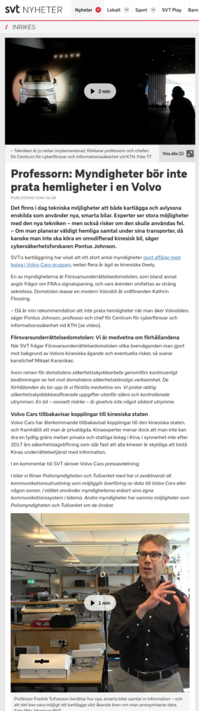 https://www.svt.se/nyheter/inrikes/professorn-myndigheter-bor-inte-prata-hemligheter-i-en-volvo?fbclid=IwAR06O-fis-uJzNx_cCZAJbrapgweB_SPEr6cIHPxUGJrJn9tg8qgnZBu6_o