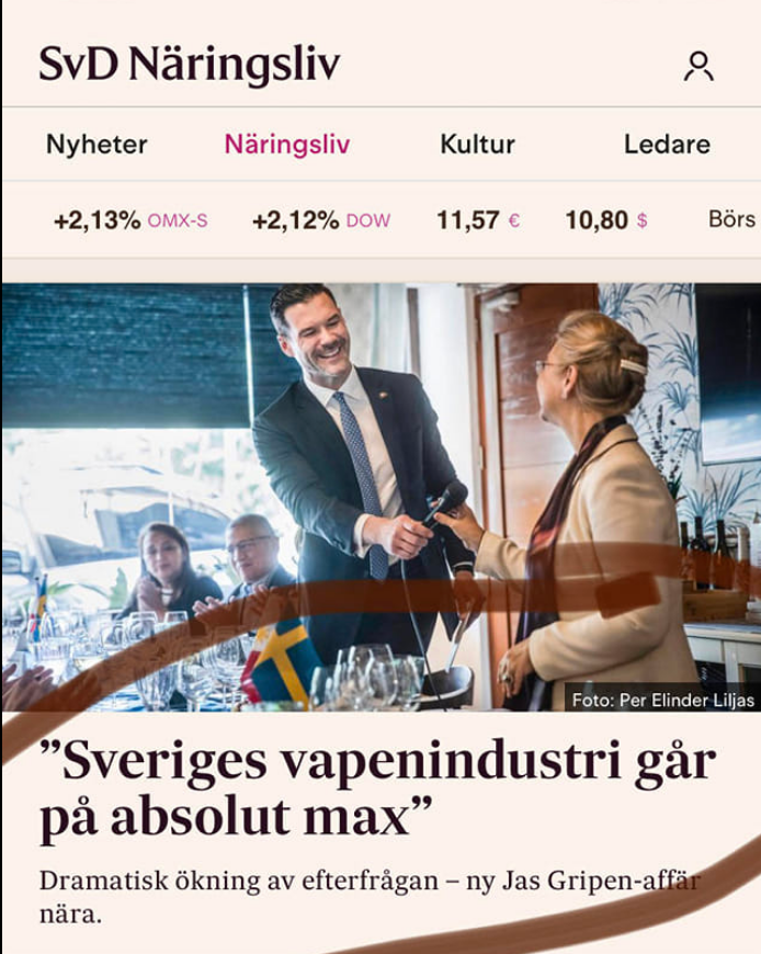 https://www.svd.se/a/q1Xzv1/sveriges-vapenindustri-gar-pa-max-jas-gripen-affar-nara?fbclid=IwAR0uK0fswydnWAgTGoB6k9EkmSBhO4psKUKuxeh8slgZhriVmU2bVrvrxeY