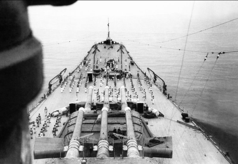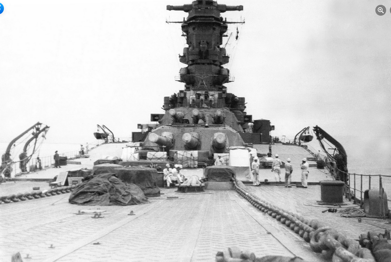 I wanted to start with a design feature that is blatantly obvious in every photo of the battleship, but is also not that well understood. That feature is the peculiar sloping shape of the deck in the vicinity of the forward turrets. The deck slopes downwards in the area of the forward turrets and then rises back up as it approaches the bow. What did this accomplish?