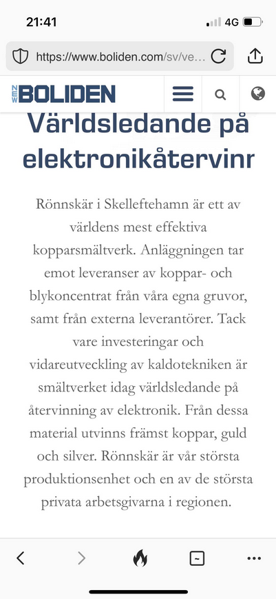 Smältverket är Sveriges enda för framställning av basmetaller. Det är inte känt vad som orsakat branden.