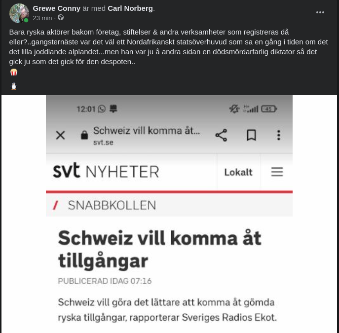 Bidra genom att Swisha till 076-118 25 68, mottagare är Caroline Norberg.