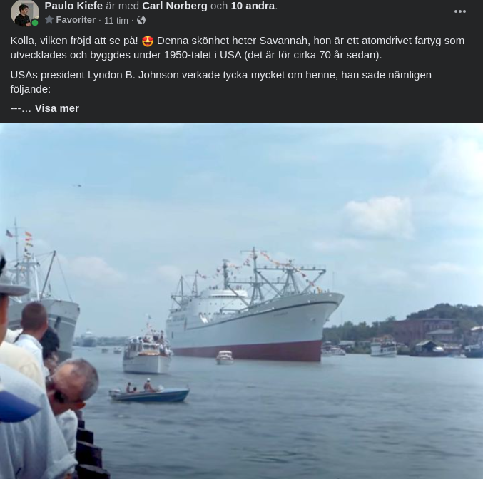 Kolla, vilken fröjd att se på! Denna skönhet heter Savannah, hon är ett atomdrivet fartyg som utvecklades och byggdes under 1950-talet i USA (det är för cirka 70 år sedan).