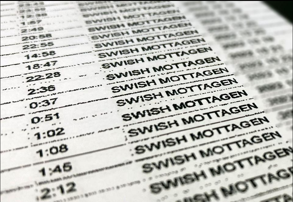 Ett 50-tal sidor med Swish-poster är en del av polisens förundersökning. Bild: Polisen