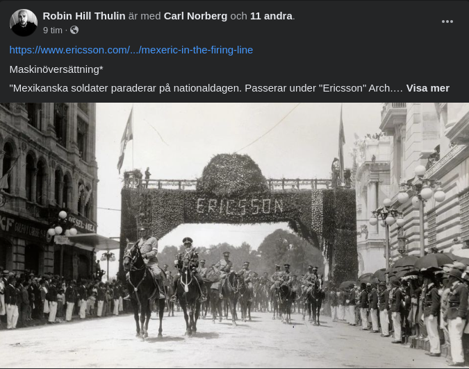 "Mexikanska soldater paraderar på nationaldagen. Passerar under "Ericsson" Arch.