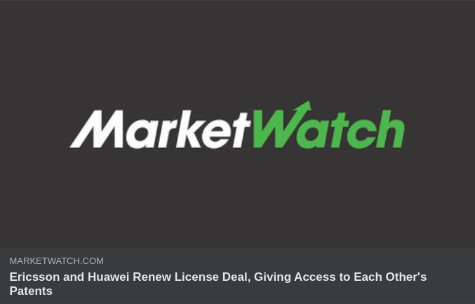 STOCKHOLM--Ericsson meddelade på fredagen att man har förnyat ett flerårigt globalt patentavtal med Huawei, vilket ger båda företagen tillgång till varandras patenterade och standardiserade teknologier.