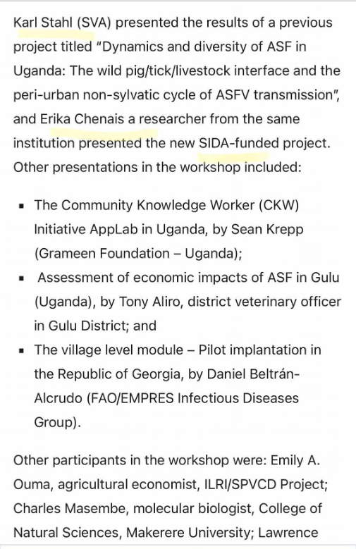 Svenskledd & Sida-Finansierad Afrikansk Svinpestsforskning I Uganda