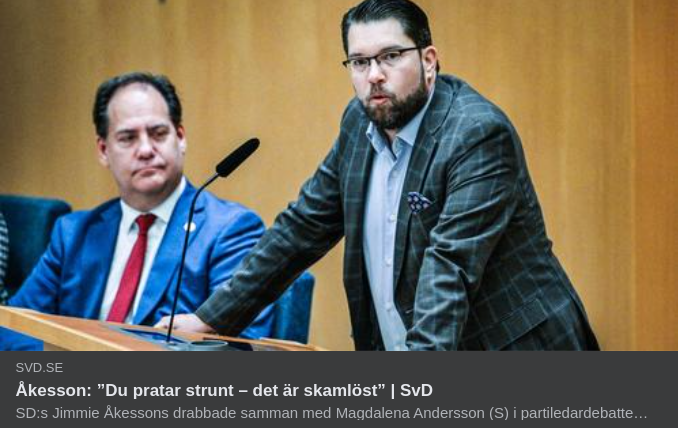 "SD:s Jimmie Åkessons drabbade samman med Magdalena Andersson (S) i partiledardebatten i riksdagen.