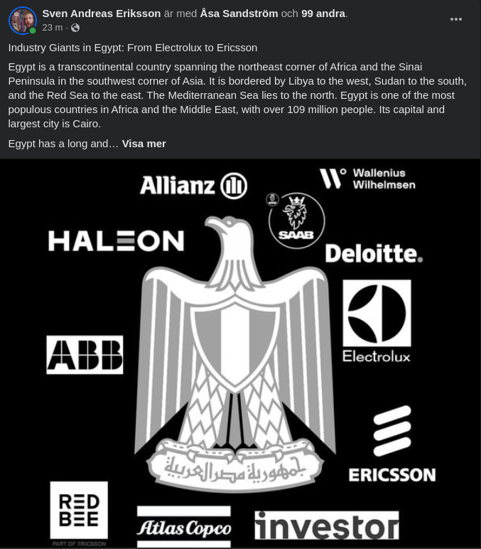 - Ericsson: In 2020, the Swedish newspaper Expressen reported that Ericsson had paid millions of dollars to a company controlled by a close associate of Egyptian President Abdel Fattah el-Sisi. The newspaper alleged that the payments were made in exchange for contracts and other favors.