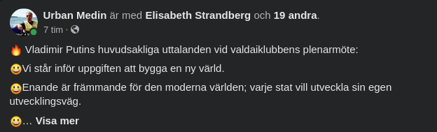 Vladimir Putins huvudsakliga uttalanden vid valdaiklubbens plenarmöte: