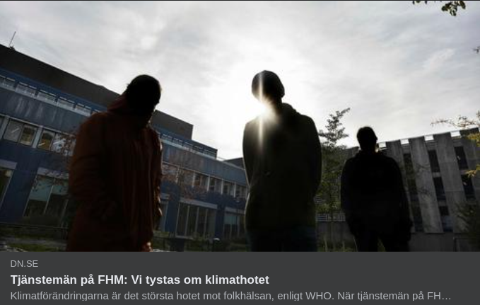 "Klimatförändringarna är det största hotet mot mänskligheten, enligt WHO. När tjänstemän på Folkhälsomyndigheten vädjade om att lyfta frågan kallades de för aktivister. Två uppmanades att gå till företagshälsovården.