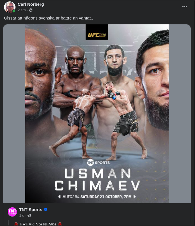Per UFC:s president Dana White, Paulo Costa är ute och den nya co-main eventen är Khamzat Chimaev vs. Kamaru Usman!#UFC294