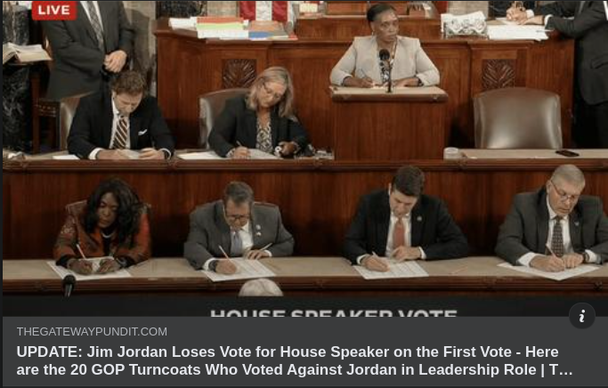 "Jim Jordan lyckades inte säkra talmanskapet vid den första omröstningen.