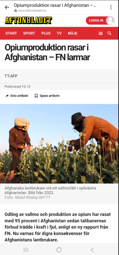 Odling av vallmo och produktion av opium har rasat med 95 procent i Afghanistan sedan talibanernas förbud trädde i kraft i fjol, enligt en ny rapport från FN. Nu varnas för digra konsekvenser för Afghanistans lantbrukare.