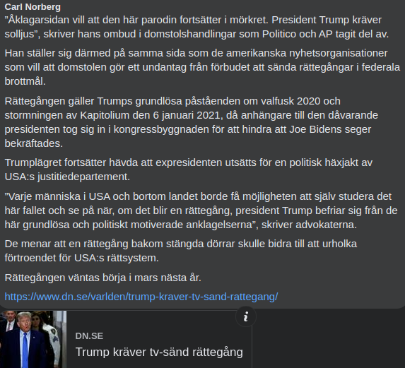 Washington Post rapporterar att Trump och hans allierade smider planer för att straffa kritiker och politiska motståndare. Den före detta presidenten ska ha pekat ut en rad fiender med namn – fiender som ska granskas eller åtalas. På Trumps svarta lista finns bland annat den före detta stabschefen John Kelly, den före detta justitieministern William Barr och den tidigare generalstabschefen Mark Milley, enligt källorna.