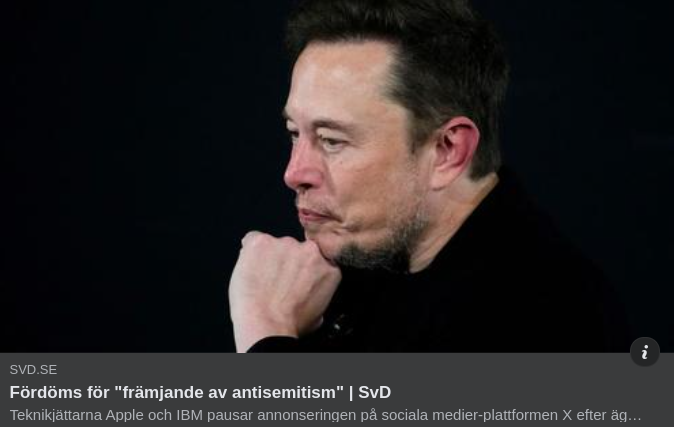 "Teknikjättarna Apple och IBM pausar annonseringen på sociala medier-plattformen X efter ägaren Elon Musks uppmärksammade kommentar på ett inlägg om judar.