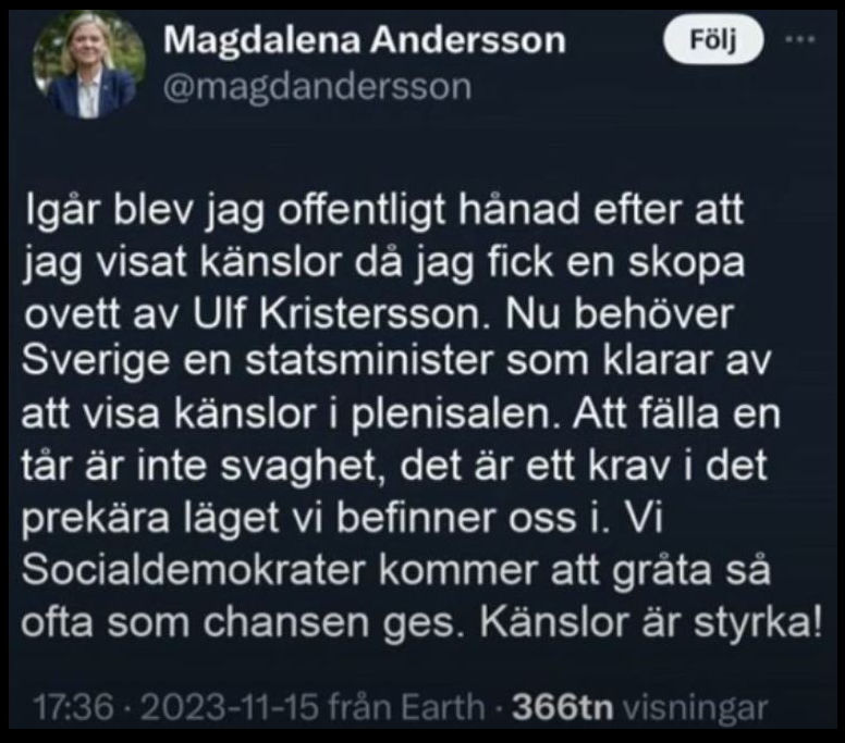 "Det blev upprört i förra veckans partiledardebatt i riksdagen när statsminister Ulf Kristersson sade att han har en känsla av att det finns en terrorromantik inom Socialdemokraterna. Magdalena Andersson reagerade starkt och kallade statsministerns påstående för ovärdigt.