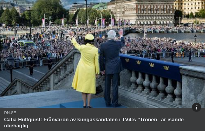 Det är i skuggan av detta som frågor om turerna kring kungasläktingen som höll sig undan delgivning för sexköpsbrott faktiskt känns som ett friskhetstecken. Och just därför som frånvaron av kungaskandalen i exempelvis TV4:s jubileumsserie ”Tronen” är isande obehaglig."