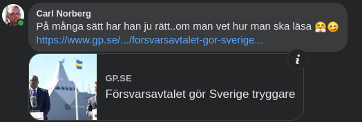 Skulle Sverige ändå angripas är möjligheterna att ta emot hjälp nu de bästa möjliga. Med materiel lagrad på plats kan vi snabbt ta emot förstärkningar från väst. Många länder – inte minst Ukraina – skulle göra vad som helst för ett motsvarande avtal.