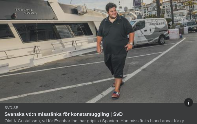 Smuggling, grov penningtvätt, urkundsförfalskning och bedrägeri. Men också deltagande i en kriminell organisation som sysslar med illegal handel med konstverk. Det misstänks den svenska företagaren Olof K Gustafsson för, visar dokument från spanska myndigheter.