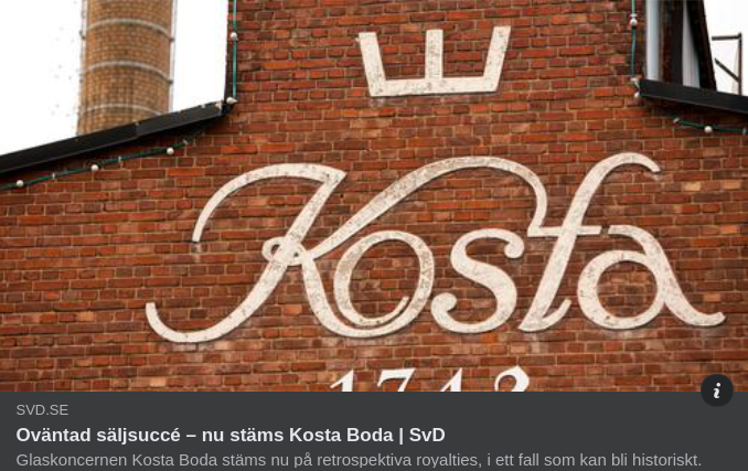 "Glaskoncernen Kosta Boda stäms nu på retrospektiva royalties, i ett fall som kan bli historiskt.