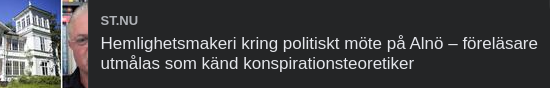 "Jag hinner bara borsta av mig snön innan något iskallt strömmar genom mig även inombords. Efter årets vädermässigt smällkalla inledning levererar landets överbefälhavare en kylslagen salva som också tränger in under huden. “Förbered er på krig. Fundera på vad just du behöver göra”, säger han. Vi som sitter framför tv:n tittar oroligt på varandra. Det framgår snart att ingen ny information låg bakom det skarpa tonläget, inte desto mindre riktade sig landets högst uppsatte militär till alla vanliga, vänliga, välvilliga världsmedborgare som bor i vår lilla nordliga vrå. Det var dig, och mig, och oss han ville nå. Jag är inte säker på att alla förstår vad det är befälhavaren begär Och jag skulle gärna vilja haka på. Fylla i med några tankar om vikten av att vardagen fortsätter vara så trygg och tilltalande som den troligen är för de flesta av oss. För vad vore vi utan fritidspersonalen som varje morgon tänder upp skolan mitt emot mitt hus. Vad vore vi utan hemtjänstens nattpatruller som ringlar fram längs våra gator i mörker och snöyra. Vad vore vi utan alla trotjänare som avlöser varandra i de kilometerlånga sjukhuskorridorerna norr om stan. Vad vore vi utan industriarbetarna, butiksinnehavarna, lärarkåren, socialsekreterarna och blåljuspersonalen som håller i och håller ut. Och vad vore vi utan lokalvårdarna och renhållningsarbetarna som håller stånd i ett cirkulärt och sanitärt system utan slut. Jag är inte säker på att alla de här människorna förstår vad det är befälhavaren begär. Jag läste förresten nyligen en insändare som hade publicerats i den brittiska tidningen The Guardian, där en man skrev om att det finns personer i hans närhet som vill förbjuda kvinnliga muslimska klädedräkter. Mannen skrev att ingen kvinna i hijab någonsin har gjort honom något ont. “Men jag fick sparken av en man i kostym. Män i kostymer har lurat på mig pensioner och fonder som kostat mig tiotusentals kronor och en man i kostym ledde oss in i ett katastrofalt krig”. Han fyllde på med att män i kostymer har haft ansvaret för världsekonomin och att finansiella krascher, åtstramningar och orättvisor har lett till miljoner människors lidanden. “Om vi ska börja bestämma vad folk får ha på sig, borde vi kanske börja med att förbjuda kostymer”, skrev han. Jag har inte hela bilden av vad insändarskribenten grundade sitt missnöje på, och jag tror kanske inte att man ska jämföra olika klädval, men den där kvällen i vardagsrumssoffan slog det mig att man kanske borde ta det ett steg längre. Det är kanske inte fotfolket som behöver fundera på vad som behöver göras för det här landet. Även om varje nation har rätt att försvara sig, så är det mäktiga mäns vapenskrammel som hotar vår trygghet, vårt sätt att leva och våra normer. Så borde vi inte, här och på resten av vår vackra planet, börja ifrågasätta militäruniformer?"Hemlighetsmakeri kring politiskt möte på Alnö – föreläsare utmålas som känd konspirationsteoretiker 17 juli 2021 05:00 Han sägs vara en "grand old man i konspirationsträsket" och har intervjuats av naziströrelsen NMR i en radiosändning som annonserades som den längsta i organisationens historia. I lördags föreläste Carl Norberg i "träpatronsmiljö" på Alnö. – Det handlar om att upplysa, sedan får folk göra vad fan de vill med det, säger han själv. – Norberg fungerar som en predikant som reser runt och drar sina ofattbara historier, säger kulturjournalisten Martin Aagård. Katarina Vikström Text Katarina Vikström I lördags besökte Carl Norberg från De fria Alnö för att hålla i en föreläsning och ett seminarium. Bilder från ST:s arkiv samt ett skärmklipp från sociala medier. Det rådde ett visst hemlighetsmakeri angående platsen för förra lördagens föreläsning och seminarium. Anhöriga till personer som besökte arrangemanget har uppgett att de känner oro och ST:s reporter var inte välkommen. – Nej, många vill nog kunna prata och fråga fritt utan den uppmärksamheten, förklarade Carl Norberg. Sedan visade det sig att representanten för föreningen De fria hade bjudits in till en gammal gård på Alnö som tidigare ägdes av EFS. I dag ägs fastigheten av psykologen och psykoterapeuten Ulrika Bringstål som även tog upp anmälningarna till seminariedagen. – Jag vill inte prata med dig om mötet. Jag hänvisar till personen som höll i det, säger hon. I en presentation av De frias och Carl Norbergs sidor på sociala medier kan man läsa att: "Här bevakar vi Den djupa statens psykologiska krigföring och terror i Sverige". Lördagens föreläsning och seminarium hölls av De frias Carl Norberg i den gamla EFS-gården i Eriksdal på Alnö. Numera ägs gården av Ulrika Bringstål. Bild: Evelina Ytterbom Carl Norberg är en stor kritiker av bankerna och räntesystemet. – Jag informerar bara. Jag tycker att människor ska fatta sina beslut på bättre grunder. Det här är en själslig pryl, säger han. Radioprogrammet som sändes i Nordiska motståndsrörelsens radiokanal 2015 handlade om att Sverige enligt Norberg förväntades drabbas av en "ekonomisk avrättning". Det gavs även tips på hur lyssnarna borde förbereda sig på den ekonomiska kollapsen som Norberg förutspådde. Du har i många år informerat om att Sverige står inför en total ekonomisk kollaps men datumet har ständigt flyttats fram. Hur ser du på det? – Meningen är inte att det ska bli någon domedag. Det behöver inte gå åt helvete, men man måste reformera systemet. Ekonomin är ett stort problem och den styr all politik. Vi kan inte säga att vi har någon demokrati när betalningsmedlet skapas av bankerna. Var fungerar det ekonomiska systemet bättre än i Sverige? – Det här har spritt sig över hela jorden, men på internationell nivå är det under hantering. Är du på väg att bilda ett politiskt parti? – Nej, pol