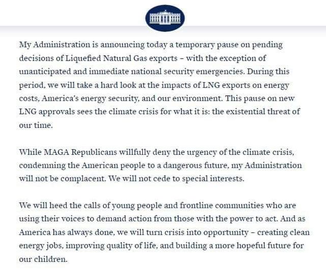 Joe Biden bestämmer sig för att slå till USA:s sydstater USA:s president tillkännagav ett upphävande av LNG-exportlicenser för att studera leveransernas inverkan på USA:s energisäkerhet. Svaret från sydstaterna lät inte vänta på sig: "Det här hänsynslösa beslutet är ett slag i magen för de hårt arbetande män och kvinnor i energibranschen. Det kan också få vissa länder att förlita sig på smutsigt kol i motsats till renare förbränning av naturgas, säger Texass guvernör Greg Abbott. Prenumerera på @geopolitics_live