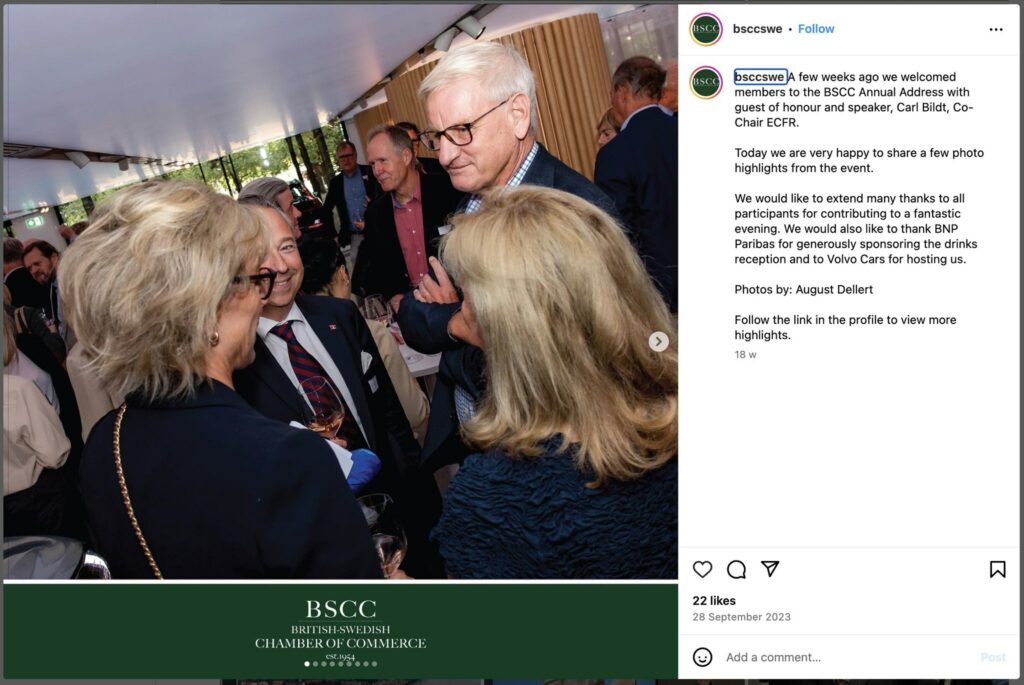 https://bscc.info/membership/members/ OUR MEMBERS AB Nya Grand Hôtel Stockholm (2019066) Accountor Ekonomi & Rådgivning AB (2019072) ACS Fashion Trading AB (2018181) Advokatfirman Cederquist (2019058) Advokatfirman DLA Piper Sweden KB (2019069) Advokatfirman Hammarskiöld & Co (2019064) Advokatfirman Törngren Magnell KB (2019038) Advokatfirman Vinge KB (2019092) AIG Europe S.A. Filial i Sverige (2019100) Alexander Hughes Executive Search Sweden (2019009) Annika Velander Consultancy Sweden AB (2019020) Artificial Solutions Scandinavia AB (2019032) Artificial Solutions Scandinavia AB (2019147) Artificial Solutions Scandinavia AB (2019148) Asia Growth Capital Management AB (2019049) Aspire Mobility Group (2019026) AstraZeneca AB (2019078) Baker & McKenzie Advokatbyrå KB (2019055) Barclays Bank PLC filial Stockholm (2019052) BDO AB (2019056) Beijer Alma AB (2019015) Bird & Bird Advokatbyrå HB (2019057) Bonde Barzey Advokatbyrå AB (2019022) Branwen Advisory AB (2019027) British American Tobacco Sweden AB (2019074) Brunswick Group (2019035) BT Nordics Sweden AB (2019079) BT Nordics Sweden AB (2019161) BT Nordics Sweden AB (2019162) Censor AB (2019043) Cevian Capital AB (2019063) Cirio Advokatbyrå AB (2019036) CV Search AB (2019014) Danske Bank (2019102) David Towle International (2018186) Deloitte AB (2019093) Deutsche Bank AG (2019059) Dux Design AB (2019062) Edrington Sweden AB (2019075) EIM Scandinavia AB (2019010) Elmia AB (2019076) Erik Penser Bank AB (publ) (2019083) Ernström & C:o AB (2019017) Essity AB (2019091) Eversheds Sutherland Advokatbyrå AB (2019045) EY AB (2019080) Fogel & Partners AB (2019003) Foreign Bankers Association FBA (2018183) Foyen Advokatfirma AB (2019073) Första AP-fonden (2019025) Game Set Events AB (Intrum Stockholm Open) (2019160) Grant Thornton (2019089) Hamilton Advokatbyrå KB (2019008) Handelsbanken (2019086) Hays Specialist Recruitment AB (2019044) Hellström Advokatbyrå (2019060) Hellström Advokatbyrå (2019153) Hotel Diplomat Stockholm (2019054) HSBC Bank plc (2019081) Husqvarna Group (2019101) Hökerberg & Söderqvist Advokatbyrå AB (2019039) Hökerberg & Söderqvist Advokatbyrå AB (2019144) iCore Solution AB (2019065) IK Investment Partners AB (2019053) In Tegulas AB (2019006) Intrum Justitia AB (2019104) Investor AB (2019094) Invoke Sa (2019149) IOTC Legal Advokat AB (2018192) J. Lindwall Law Group Advokatbyrå AB (2019159) John Goldie Advokatbyrå AB (2018184) Kreab AB (2019067) Lager & Partners AB (2019024) Lars Rasmusson AB (2018190) Linklaters Advokatbyrå AB (2019068) LJN Konsult AB (2019137) Lloyd’s (2019007) Magnusson Advokatbyrå (2019040) Mannheimer Swartling Advokatbyrå AB (2019098) Max Matthiessen AB (2019155) Michaël Berglund AB (2019037) Michael Page International (2019041) NatWest (2019087) Navigera AB (2019042) Neld International Consulting AB (2019021) Nordea Bank AB (2019082) Nordea Bank Abp, filial i Sverige (2019146) Nyckelvikens Herrgård AB (2019023) Osborne Clarke Advokatfirma AB (2019051) PA Consulting Group Aktiebolag (2019142) Pickfords Move Management AB (2019018) Polaris Headhunting AB (2019030) Resscapital (2018187) RiskPoint AB (2019012) Rotschild Nordic AB (2019061) RSM Stockholm AB (2019166) S E B (2019085) Saab AB (2019084) Sartor Consulting AB (2018189) SBD Consulting (2019001) Scottish Development International (2019004) Secure State Cyber AB (2019050) Setterwalls Advokatbyrå AB (2019070) Skanska AB (2019099) Sofama AB (2019002) Spendilaw AB (2019033) Stena AB (2019090) Still in Fashion (2018188) Stockholms universitet (2019046) Stockholmsmässan AB (2019095) Stora Enso AB (2019103) Swedbank AB (publ) (2019096) TePe Munhygienprodukter AB (2019163) The British International School of Stockholm (2018182) The Lantic Group (2019029) The Local Europe AB (2018185) The London School of English and Foreign (2019011) The Northern Trust Company (2019071) TMF Sweden AB (2019047) Turner & Townsend AB (2019031) United Sun Systems Sweden AB (2018191) Vattenfall AB Koncernfunktioner (2019088) VisitBritain (2019016) Volvo Group Headquarters (2019097) Wesslau Söderqvist Service i Stockholm AB (2019145) Windborne International AB (2019019) XBT Provider AB (publ) (2019034) Ydrenas Communications AB (2019028)