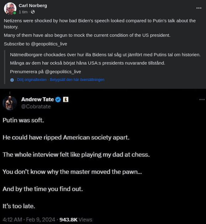 Samtidigt Med Tucker-Putin Från Underlivsporslinet