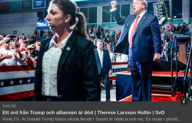 Låt Europas länder ta ansvar för sig själva så får vi se hur invasionsbenäget Ryssland är... https://www.svd.se/a/bgEEmg/trump-kan-inte-lamna-nato-men-anda-sanka-alliansen "Så gjorde han det igen. Gav européerna skrämselhicka. Trump ska – åtminstone enligt honom själv – under sin presidenttid ha sagt på ett Natotoppmöte att han skulle ”uppmuntra” Ryssland att göra ”vad f-n de vill” med Natoländer som inte satsar tillräckligt mycket på sitt försvar. Med andra ord skulle USA strunta i Natos artikel 5, själva grundbulten i försvarsalliansens existens. Den om att en attack på ett Natoland är en attack på alla. Vilket i praktiken skulle vara en dödsdom för Nato. Nu går det förstås att argumentera för att det Donald Trump gör, är att än en gång sätta en blåslampa under europeiska politiker. Vi såg under hans presidentperiod hur försvarsbudgetarna i Europa steg. Sedan slappnades det av något när Trump lämnade Vita huset, fram tills dess att en viss Vladimir Putin invaderade Ukraina i februari 2022 då utgifterna återigen steg. Ändå är det bara en dryg tredjedel av Natoländerna som når upp i att lägga de två procent av BNP på försvaret, som man kom överens om på Natomötet i Wales 2014. Dessutom kan inte Donald Trump – eller någon annan möjlig framtida president – på egen hand besluta att USA ska lämna Nato. Det har två senatorer sett till. I fjol lade demokraten Tim Kaine och republikanen Marco Rubio fram ett gemensamt lagförslag som klubbades strax före jul. Det slår fast att två tredjedelar av senatorerna måste säga ja för att USA ska kunna gå ur Nato (även om det också finns en annan variant där båda kamrarna behöver säga ja). En anmälan om utträde görs därefter skriftligen. Sedan dröjer det ett år innan utträdet de facto träder i kraft. Allt slås fast i Washingtonfördragets artikel 13 och ironiskt nog är det i sådana fall till sig själva som amerikanerna ska skicka brevet om att de vill lämna alliansen. Det kommer knappast att hända. För bortom Trump finns det egentligen ingen större diskussion i USA om att lämna Nato. Världen är osäker och en betydande majoritet av amerikanerna inser att landet behöver alla allierade de kan få. Men verkligheten är sällan enkel. För vill man vara krass så behöver en framtida president Trump egentligen inte formellt lämna Nato för att skjuta försvarsalliansen i sank. Det räcker egentligen att göra exakt det som Donald Trump så ofta hotat med: Säga offentligt att USA inte tänker komma till sina allierades hjälp. Natos styrka bygger nämligen på avskräckning. Enbart tanken på att amerikanerna kommer sättandes med all sin militära makt ska vara nog för att få Ryssland att låta bli att anfalla exempelvis Estland eller Polen. Men om en president Trump säger öppet att Putin får göra vad han vill, USA tänker inte undsätta, så är Nato i praktiken dött i alla fall. Och då spelar det ingen roll om USA formellt fortfarande är medlem. Men med det sagt så finns det en sak som är viktig att notera. För även om Trump under sin första presidentperiod ofta antydde – eller nästan hotade – att han skulle strunta i artikel 5, så var det aldrig något han sa offentligt. Så långt valde han aldrig att gå. Vad han gör den här gången vet vi förstås inte. Hans tal och de förberedelser som görs tyder på att det är en revanschlysten, mer radikal och självsäker Trump som nu kanske får sitta i Ovala rummet igen. Kanske innebär det slutet för Nato. Eller så gör han Europas politiker rent av en tjänst, och tvingar dem att ta ansvaret för sin egen säkerhet på allvar."