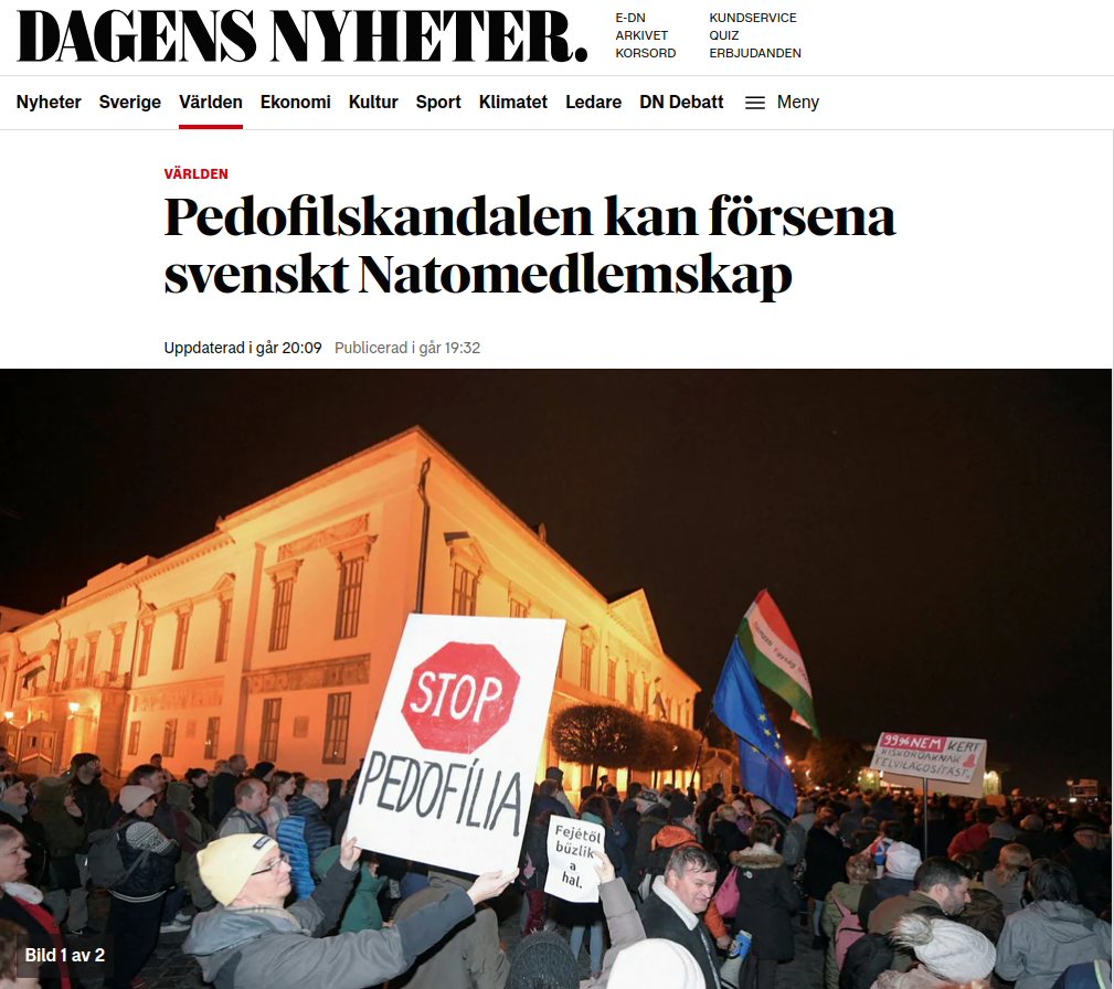 https://www.dn.se/varlden/hogljudd-sverigekritiker-far-nyckelroll-i-natofragan/ "Han har anklagat regeringen för att vara arrogant och beskrivs som ansiktet utåt för Ungerns Sverigekritik under Natoprocessen. Efter avgångsbeskedet från landets president kan det nu bli talmannen László Kövérs uppdrag att fullfölja ratificeringen. Pressen på Katalin Novák blev för stor efter att det uppdagats att presidenten ifjol benådat en man som dömts för att ha försökt tysta offren i en pedofilhärva. På lördagskvällen gick hon kritikerna till mötes och meddelade sin avgång. Presidenten i Ungern har begränsad makt och rollen är främst ceremoniell. En av arbetsuppgifterna är dock att skriva under lagar som antagits av parlamentet, där Sveriges Natoansökan har fastnat. Novák tillhör Fidesz, samma parti som premiärminister Viktor Orbán, men har åtminstone utåt haft en mindre kritisk hållning till ett svenskt medlemskap. – Hon har intagit ett slags mellanposition mellan Fidesz och oppositionen. Hon har varit mer aktiv än regeringen och velat få något att hända, både att Kristersson ska komma till Budapest och att Orbán ska agera, säger Ungernkännaren Anders Blomqvist, som samtidigt konstaterar att det är Orbán som styr och ställer. Efter beskedet från Novák har parlamentet 15 dagar på sig att acceptera hennes avgång. Slutdatumet sammanfaller med att ledamöterna i slutet av februari återsamlas efter vinteruppehållet. Under de efterföljande 30 dagarna ska parlamentet också utse hennes efterträdare. Innan en ny president valts kommer talmannen László Kövér – även han från Fidesz – tillfälligt ta över uppdraget. Om politikerna i kammaren röstar ja i Natofrågan blir det då upp till honom att skriva under lagen. Sedan Natoprocessen inleddes har Kövér flera gånger ställt sig kritisk till ett svenskt medlemskap. Senast i slutet av januari sade han att parlamentet inte har någon brådska med att ta upp ärendet, trots att Orbáns regering lovat att inte vara sist ut med ratificeringen. Kövér anklagade samtidigt Sverige för att ha varit ”arrogant” mot Ungern. Han pekade bland annat på kritik som riktats mot demokratiutvecklingen i landet. – Svenskarna – och även finländarna – gick så långt i att förnedra Ungern, i att vara nedsättande mot vår demokratiskt valda regering, att vi inte bara kan låtsats som att det inte hände, sade han då. – Han har uttalat sig väldigt hårt i inhemska medier. Han och Orbán har samma inställning, men premiärministern har inte uttalat sig lika grovt. Kövér skräder inte med orden. Hos honom finns en djup oförståelse till varför Ungern över huvud taget ska släppa in Sverige. Som tillförordnad president har Kövér möjlighet att försena Natomedlemskapet ytterligare. Om parlamentet ger grönt ljus har han fem dagar på sig att skriva under ratificeringen efter att den nått hans bord. Men han kan också skicka tillbaka frågan till kammaren för en ny omröstning, skriver ungerska Telex. Nováks avgång är därför ingen positiv utveckling för Sverige, enligt Anders Blomqvist. Samtidigt tror han inte att det är på presidentposten hindret för medlemskap finns. Företrädare för Fidesz kräver att statsminister Ulf Kristersson reser till landet innan omröstningen i parlamentet äger rum och ett sådant besök kan göra resten av processen till en snabb affär, bedömer Ungernkännaren. – Om Kristersson åker till Budapest och säger att Ungern är en demokrati kommer de att rösta om medlemskapet. Då är det klart. Orbán vill visa upp det för sina väljare och jag har svårt att se att han kommer att komma med nya krav. Förra månaden bjöd Viktor Orbán in statsministern, som svarade att han gärna kommer till Ungern, men att ledarna skulle få chans att talas vid redan under EU-toppmötet i Bryssel. Det var samtidigt oklart om Ulf Kristersson avsåg att resa till Budapest före eller efter omröstningen. I helgen sade Ulf Kristersson till TT att regeringen fortfarande diskuterar datumfrågan. – Det är lite tjocka almanackor, men vi kommer att lösa det."https://www.dn.se/varlden/pedofilskandalen-kan-forsena-svenskt-natomedlemskap/ Den politiska krisen i Ungern, där presidenten tvingats bort efter en pedofilskandal, riskerar att försena det svenska Natomedlemskapet. – Såväl opposition som regering är fullt upptagna med inrikespolitik nu, säger analytikern Zsuzsanna Végh. Ungern är i politisk kris. I helgen avgick två av premiärminister Viktor Orbáns förtrogna sedan det avslöjats att de benådat en person som kopplats till sexbrott mot barn och dömts till över tre års fängelse. President Katalin Novák och tidigare justitieministern Judit Varga, som toppat regeringspartiet Fidesz lista i EU-valet, måste nu ersättas med andra krafter. Det väntas ta över en månad innan parlamentet, där Fidesz har egen majoritet, utser en ny president. Katalin Novák avgick som president i Ungern i helgen efter att det framkommit att hon benådat en person som dömts till fängelse för att ha försökt dölja sexbrott mot barn. – När hela politiska fokuset ligger på den här skandalen finns begränsat med utrymme för andra frågor. Det kan ytterligare försena Natoratificeringen, säger Zsuzsanna Végh, analytiker hos tankesmedjan German Marshall Fund i Berlin. Hon framhåller att val av ny president ses som viktigare. Liksom att skandalen fortgår så länge nya avslöjanden briserar. Oppositionspolitikern Márton Gyöngyösi, från högerpartiet Jobbik, anser att pedofilskandalen ger Orbán möjligheter att nedprioritera Sverige. – En försening (av Nato) är överhängande, säger han till nyhetssajten EU Observer. I Ungern ska presidenten godkänna Natomedlemskapet efter att parlamentet har gett sitt klartecken. – Formellt behöver det inte försena medlemskapet. Men Orbán kan ju använda det som ursäkt, säger Zsuzsanna Végh. Om en ordi