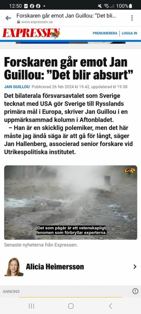 "Det talas om det senaste försvarsavtalet mellan Sverige och USA. I en krönika från Jan Guillou för Aftonbladet skriver författaren och journalisten att Sverige har underkastat sig USA och i och med det gjort Sverige till Rysslands främsta måltavla. Vem ville egentligen på detta sätt göra Sverige till Rysslands absolut primära mål i Europa i händelse av krig? skriver Guillou. Att det bilaterala avtalet med USA skulle göra Sverige extra utsatt för ett angrepp från Ryssland det tror inte Jan Hallenberg, associerad senior forskare vid Utrikespolitiska institutet. – Jag anser att det här avtalet gör att hotet mot Sverige minskar, i kontexten av att vi samtidigt är på väg in i Nato. Det faktum att USA är beredd att försvara Sverige bilateralt och i Natosammanhang förstärker den svenska avskräckningsförmågan och minskar risken för en attack mot Sverige. DET HÄR INGÅR I AVTALET I avtalet ingår att USA får tillgång till Sveriges samtliga flygflottiljer och alla större arméförläggningar, 17 totalt. Avtalet ger USA rätt att bland annat placera ut militär personal, genomföra övningar, och mellanlanda för tankning och annat med såväl flyg som fartyg. Det är oklart hur mycket amerikansk personal som kommer att stationeras i Sverige, och under hur lång tid. Den amerikanska personalen kommer inte lyda under svensk lag, utan för dem gäller amerikansk straffrättslig lagstiftning. USA ges ”exklusiv kontroll” över materiel, men behöver i förväg informera Sverige om exakt vilken typ av materiel som förs in. Det finns dock i avtalet inga undantag för typ av vapen, inte heller kärnvapen. Avtalet tillåter USA att bygga ut områden och anläggningar för att lagra vapen och försvarsmateriel. Det kommer inte bli några permanenta amerikanska baser på svensk mark. Såvitt Jan Hallenberg kan överblicka är avtalet Sverige och USA emellan ett standardavtal – även om det är långtgående. Det finns amerikanska trupper i 178 länder, i 80 av dem finns omkring 750 baser utplacerade. Norge, Finland och Danmark har liknande avtal. Jan Hallenberg säger att det varit lite stökigt i Irak och Japan då amerikanska soldater begått brott, som på grund av avtalen, inte hanteras av det nationella rättsväsendet. – Så helt problemfritt är det så klart inte, men samtidigt ska man komma ihåg att USA med det här avtalet garanterar Sveriges säkerhet och för att de ska göra det så får vi betala ett pris. Och jag tycker inte det är orimligt, säger Jan Hallenberg. Menar han då att USA ockuperar 80 länder? De amerikanska avtalsförfattarna – av svenska sådana finns inte ett spår – tycks ha tänkt på allt. Men de har ju lång erfarenhet från alla länder de ockuperat, skriver Guillou. Jan Hallenberg vänder sig mot Guillous språkbruk. – Menar han då att USA ockuperar 80 länder? Jag menar, det blir ju på något sätt absurt. Han är en skicklig polemiker, men det här måste jag ändå säga är att gå för långt. Om USA skulle dra sig ur Nato blir situationen en annan enligt Hallenberg, men att Ryssland skulle angripa USA genom Sverige ser han inte som troligt. Jokern i leken – Donald Trump Om Donald Trump vinner det amerikanska presidentvalet i november förändras spelplanen, men Jacob Westberg, docent i krigsvetenskap och universitetslektor med inriktning mot säkerhetspolitik och strategi vid Försvarshögskolan, tror inte att USA kommer att lämna Nato. – Den amerikanska kongressen var bekymrad över vad Trump kan tänkas hitta på så de fattade beslut om att en amerikansk president inte ensidigt kan besluta om att USA ska lämna Nato, utan att det krävs att kongressen är med, så på så sätt har man försökt minska sannolikheten att Trump ska kunna lämna, säger Jacob Westberg. Han anser inte heller att hotet mot Sverige ökar med anledning av försvarsavtalet – tvärtom. – Natos artikel 5 utlöses inte automatiskt utan det krävs en enighet om att det rör sig om ett väpnat angrepp och där finns det ju en tidsaspekt som är besvärlig, och där är det nog så att det är en koalition av villiga stater inom Nato som skrider till hjälp, men här kommer också USA:s bilaterala förmågor in. För att de ska kunna kicka in med kraft så är det väldigt förmånligt att vi har den här typen av avtal. "