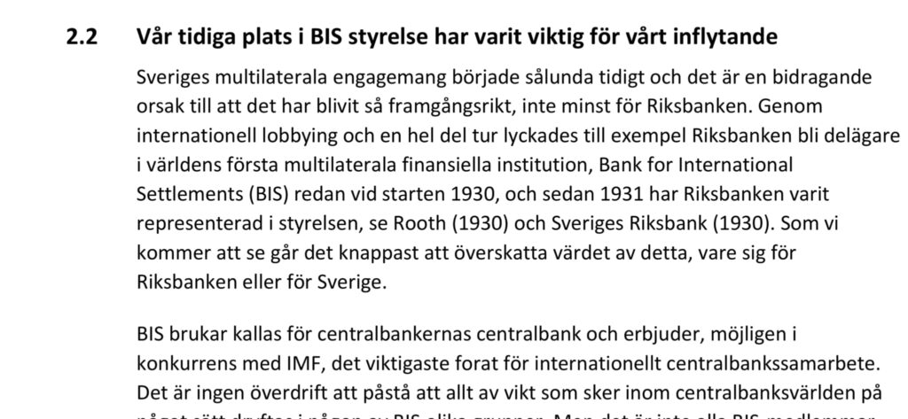 Tidigt Svenskt I BIS Riksbankskonstaterat Viktigt För Inflytande