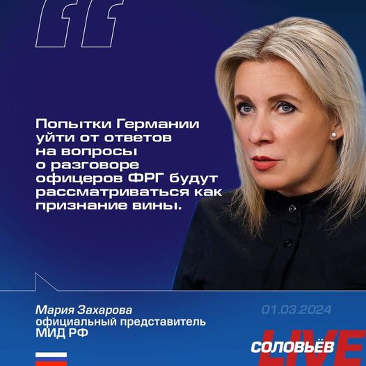 Ryssland kräver en förklaring från Tyskland angående samtalet mellan tyska officerare om attacken mot Krimbron - Maria Zakharova