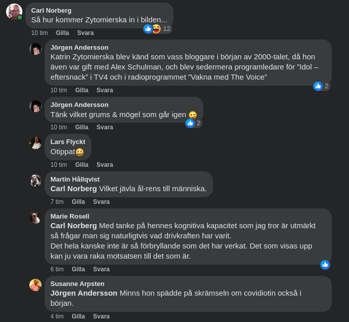 https://www.dn.se/sverige/alex-schulman-det-ar-en-fasa-att-se-hur-spraket-dor-i-melodifestivalens-lattexter/ "Vad är det som händer i Melodifestivalen? Låtarna är numera så dåliga att man knappt vet om det är musik längre. För att inte tala om de infantila texterna. Detta är en kommenterande text. Skribenten svarar för analys och ställningstaganden i texten. Ett spännande grepp i Melodifestivalens delfinal nummer fem i helgen var det rundabordssamtal mellan artisterna som introducerade varje nytt bidrag. Samtliga artister placerades på stolar i en ring, Carina Berg ledde pratet med glasögonen i pannan, vilket väl skulle signalera att här är det inte meningen att vi ska glittra, här ska vi vara sanna. Jag tycker på sätt och vis att greppet var lyckat, även om det var besvärligt att titta på. Det var som att bevittna ett första trevande gruppsamtal för Anonyma Narcissister. Ingen i rummet var egentligen intresserad av någon annan än sig själv, så fort någon öppnade munnen infann sig en form av apati hos samtliga övriga, ett nästan ursinnigt ointresse. Ljudlösa suckar, någon tittade tomt ut i universum i väntan på att det skulle ta slut, andra mer tydliga i sitt råa hat mot den som öppnade munnen. Ett par av dem låtsades i alla fall lyssna, men blev omedelbart påkomna eftersom det var så tydligt att de inte reagerade på något som sades, inga ord nådde fram. En enda gång ställde en av artisterna en fråga till en annan, då kippade de andra efter andan, man såg plötsligt deras desperata funderingar: Är detta något som förväntas också av oss? Gubbarna i gruppen Medina vinnlade sig om att inte säga ett enda ord till de andra under hela samtalet, men sen blev det deras tur och då flög de upp ur stolarna, jävlar vad de snackade och gestikulerade och drog historier. De hade så mycket att säga om sig själva! Och då sjönk de övriga in i dvala. När någon gravallvarligt sjunger ”vi tar kommando, vi går loco, loco, är ni med, bailando”, ja, då händer det, språket går faktiskt sönder Ja, det var ett spännande grepp för det avslöjade så mycket, och samtalet avslutades kongenialt när någon kom på idén att gänget skulle gruppkramas och det var en unik stund, ett slags gigantiskt antiklimax, det var den mest onaturliga omfamning jag någonsin tagit del av. Det blev värre när de började sjunga. Nivån på musiken i den här musiktävlingen är nu på en historisk låg nivå, det är så debilt att man knappt vet om det ens är musik längre, kan det ha hänt något, kan formatet stegvis gjort sig av med melodierna, utan att vi riktigt märkt det? Kvar tycks bara finnas olyckliga ljud, sorgliga läten, missklanger och någon form av oroliga takter. Med låttexterna är det ännu värre ställt. De är så infantila att de tycks driva språket mot en existentiell kris, en kris som känns mer och mer akut ju längre in i programmet vi kommer, och när någon gravallvarligt sjunger ”vi tar kommando, vi går loco, loco, är ni med, bailando”, ja, då händer det, språket går faktiskt sönder, det krackelerar under tyngden av idioti, ”oh la la, comme ci, comme ci, comme ça, åh detta glitter, nu tar vi vår plats, banne maj”, allt rasar, för det betyder ingenting. Och jag inser att det är en rätt betydande sak att uppleva, stort och mäktigt, när ett språk går sönder, som när en glaciär går ner i ett hav med ett dån, kvar finns bara ord som guppar i svallningarna, stumpar av meningar sammansatta av någon som glömt vad orden en gång betydde, ja, ”vi går prop-pop-pop”, sjunger någon olyckligt på scenen. ”Vårt nya motto är dansez, dansez, allez, allez”. Det är en fasa och en sorg att se ett språk dö, men på scen är de galna av eufori, de sjunger om en glädje som ”skiner som hundra solarier” men plötsligt blir de högtidliga när de sammanfattar budskapet, ett slags testamente: ”Jag ser mitt liv i panorama, vi är inte lovade mañana.” Det är nästan sakralt. Orden är där, det låter som nåt som har substans, innebörd, men det betyder absolut ingenting, för språket har gått sönder. Det finns inte längre."