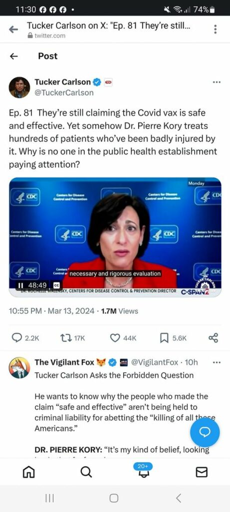 https://twitter.com/tuckercarlson/status/1768033041568727391?s=46&t=CG2Pfm1hIYzcLEy5kk2sGQ&fbclid=IwAR181KQIVjxsQtorvoKLIAah29_OZZoeiRC-BQnPZ72vPJUpjJeXsp2MlJ8