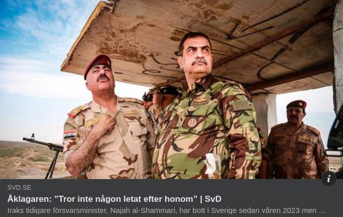 https://www.svd.se/a/xg17xp/aklagaren-tror-inte-nagon-letat-efter-najah-al-shammari "Najah al-Shammari greps på måndagen på Arlanda och förhör med honom skulle hållas av polis vid lunch dagen efter. Han är ursprungligen från Irak och kom till Sverige 2009. al-Shammari återvände till Irak där han var försvarsminister under 2019–2020. Fram tills i måndags var han anhållen i sin utevaro, misstänkt för grovt bidragsbrott. Polisen ville på tisdagen inte ge några kommentarer eller bekräfta att förhöret hade hållits. Inte heller åklagare Jens Nilsson kunde ge besked. – Jag vet inte om han har förhörts, men de (polisen, reds anm) hade väl hört av sig om han inte hade dykt upp, säger han. Han räknar inte med att begära häktning av Najah al-Shammari. – Nej, det tror jag inte med tanke på att det är så gamla gärningar. Dessutom är han skriven i Sverige och har sin familj här. Du är inte orolig för att han ska avvika? – Det kan man inte garantera, men jag tyckte inte det fanns skäl att begära honom häktad. Han har ju bott i Sverige sedan våren 2023, har han hållit sig undan polisen? – Jag tror inte det är någon som har letat efter honom. Polisen har tusentals sådana ärenden. Det var en slump att man hittade honom? – Slump och slump, jag vet inte exakt vilken kontroll som sker när man kommer till Sverige. Uppenbarligen upptäckte man att han var efterlyst. Arbetet med förundersökningen mot Najah al-Shammari, som gäller grovt bidragsbrott, ska nu återupptas. Den har pågått i flera år och Jens Nilsson ska nu sätta sig in i det på nytt. – Jag har haft funderingar på att lägga ner förundersökningen, men nu ska jag sätta mig in i detaljerna och avgöra om åtal ska väckas eller inte. Brottsrubriceringen är grovt bidragsbrott, vilket i teorin – om det blir ett åtal och Najah al-Shammari döms för brottet – kan ge fängelse. – Men det brukar man inte få om det inte handlar om miljonbelopp. Det är inte något bötesbrott, så om det inte blir fängelse så kan det bli villkorligt eller skyddstillsyn, säger Jens Nilsson. Najah al-Shammari greps på måndagen av gränspolisen på Arlanda, enligt uppgifter från TV4. Efter att han kom till Sverige sökte han asyl. 2011 fick han permanent uppehållstillstånd, fyra år senare beviljades han svenskt medborgarskap. Under åren i Sverige saknade han regelbunden sysselsättning och fasta inkomster och levde på socialbidrag. Först när de svenska myndigheterna 2019 fick klart för sig att Najah al-Shammari var minister med lön från den irakiska staten, stoppades utbetalningarna till honom. Utredningar drogs då igång om bidragsbedrägeri och folkbokföringsbrott."