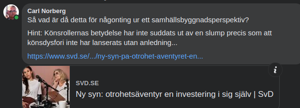 https://www.svd.se/a/8J3nJx/ny-syn-pa-otrohet-aventyret-en-investering-i-sig-sjalv "”Berätta innan du är otrogen, inte efter.” Det är sexologen och terapeuten Malena Ivarsons råd. Att leva i en lång relation utan att bli förälskad då och då är omöjligt, menar hon. – Vi är inte isolerade i våra hem. Vi är ute och rör oss. Det är klart att vi blir påverkade och förälskade. Sedan är det bara frågan om hur man agerar på det. En ärlighetsgåva, kallar Malena Ivarsson det. Genom att berätta att man vill vara otrogen innan det händer avdramatiserar man känslan och gör partnern delaktig i processen. – Det som skadar i otroheten är oftast inte själva akten utan tilliten. Att man trott på att han skulle spela golf när han i själva verket var med den här andra personen. När man försöker fundera ut vad som egentligen hände, kontra det man själv trodde hände, blir man rubbad i sin identitet. Det är nog det som är det värsta. Behövs rum för intima samtal Malena Ivarsson har ofrivilligt blivit en förespråkare för otrohet. Så fort hon ger en intervju blir rubriken vinklad på otrohet, även om det inte var ämnet för intervjun, berättar hon. Det gör att hon känner sig utnyttjad av media, då hennes poäng, att otrohet inte är rätt men ibland nödvändigt, ofta gått förlorad. Men Malena Ivarsson ifrågasätter inte intresset för otrohet. Tillsammans med radiojournalisten Samanda Ekman, gör hon i dag podden ”Till sängs”, och avsnittet ”Otrohetskapseln” är ett av deras mest lyssnade. Malena Ivarsson menar att det speglar att vi behöver ett rum för ett intimt samtal om något som många skäms över. Berätta eller inte berätta om otrohet? Därom, bland annat, tvistar Samanda Ekman och Malena Ivarsson. Berätta eller inte berätta om otrohet? Därom, bland annat, tvistar Samanda Ekman och Malena Ivarsson. Foto: Judit Nilsson ”Det jungianska sättet” Jag träffar Malena Ivarsson och Samanda Ekman på Malenas kontor på Östermalm i Stockholm och behöver bara ställa frågan om otrohet är något man ska berätta om eller inte – sedan är det bara att trycka på rec-knappen, luta sig bakåt och åka med. De går i gång direkt, kastar in inspel och referenser, är sällan överens men engagerade och passionerade. – När vi precis hade börjat podda och du, Malena, introducerat det jungianska sättet att se på förälskelse och därmed otrohet fick jag känslor för en annan person än min partner. Och då kände jag mig så trygg i att förklara för min partner att visst, jag har känslor för en annan men det är bara jungianskt, säger Samanda Ekman med ett skratt. Ärlighet bättre än att smussla Malena Ivarssons husgud, den schweiziska psykiatern Carl Gustav Jung, ansåg att man kan lära sig mycket om sitt inre genom att iaktta vad man går i gång på. Och att det alltid är bättre att vara öppen än att smussla. Jung gjorde inget för att dölja att han hade två älskarinnor vid sidan om sin fru, och gick så långt som att, i ett brev till psykoanalytikern Sigmund Freud, hävda att förutsättningen för ett gott äktenskap var rätten att vara otrogen. – De jungianska känslorna betyder att det är någonting med den andra personen som jag vill ha i mig själv. Eller utveckla i mig själv. Om man inte tänker jungianskt får man skamkänslor och försöker lägga på locket. Det var det som var bra i mitt fall. Nu kunde jag berätta i ett tidigt skede att så här är det – och då sprack trollet. Förälskelsen hann aldrig byggas upp till någonting som tog fart och kunde få eget liv, säger Samanda Ekman. ”Det ska vara ’family values’ på otroheten”, säger Samanda Ekman. ”Så tokig föreställning” Samtidigt hoppas och tror hon att hon skulle kunna hantera om hennes partner var otrogen. – Han skulle behöva sköta det snyggt, så att det inte börjar kosta i vår relation. Och inte berätta om det. Man får hålla det för sig själv och man får bära det själv. Det reglerar också att man inte tar en för stor tugga av otroheten. För även om det ger energi är det också kostsamt. Om man ska få vara otrogen måste det på något sätt bidra till det gemensamma. Det ska vara ”family values” på otroheten. Men det är ett rent hypotetiskt resonemang – och Malena Ivarsson underkänner det direkt. – Alltså, det där är ju en så tokig föreställning. För man trillar dit. Samanda kontrar: – Jag tror att man blandar ihop otrohet med rädslan med att bli lämnad. Jag har ju upplevt det och är inte längre rädd för det. När jag blev brutalt och smärtsamt övergiven önskade jag att min partner hade haft en otrohetsaffär, i stället för att bryta upp allting. ”Otrohet är en process som man kan komma igenom”, säger Malena Ivarsson. ”Otrohet är en process som man kan komma igenom”, säger Malena Ivarsson. Foto: Judit Nilsson ”Otrohet något på sin bucketlist” Hon tror att många i hennes generation och yngre resonerar som att relationen klarar av en otrohet. – Det har skett en attitydförändring till att man kan se otrohet som en sinnesutvidgande upplevelse, något på sin bucketlist, att jämföra med att ta någon psykedelisk drog. Att ett otrohetsäventyr är en investering i sig själv, samtidigt som man fortfarande vill ha sin partner för att det ger andra saker. Hon menar att det finns de som kan kontrollera den intima kapsel som en otrohet kan vara, separat från övriga livet och från sin relation. – Man gör en uppdelning mellan sitt liv och sitt äventyr. Jag säger inte att alla kan det men synen på hälsa har utvecklats och många förordar att man ska ta hand om sig och göra det som man mår bra av, och där tror jag att otrohet kan komma in som en förnyelse. Värre att fastna krampaktigt Förnyelsen ställer sig Malena Ivarsson bakom. – Ibland är det exempelvis det enda sättet att ta sig ur ett förhållande som är destruktivt