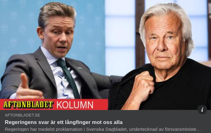 https://www.aftonbladet.se/nyheter/kolumnister/a/RzbqxW/regeringens-svar-om-dca-avtalet-ar-ett-langfinger-mot-oss-alla "Regeringen har medelst proklamation i Svenska Dagbladet, undertecknad av försvarsminister Pål Jonson och sekundanter från L och KD, äntligen bemött kritiken mot sitt försvarsavtal med USA. Det är bara det att texten är en oförskämdhet med stark lukt av förakt mot det demokratiska samtalet. Dessutom ogenerat hotfull mot den som uppvisar annan uppfattning. Det hade annars funnits en hel del att förklara och försvara. DCA-avtalet, som det kallas, är nämligen häpnadsväckande läsning. Det ser ut som ett kapitulationsdokument efter ett förlorat krig. Segrarmakten USA får ”obehindrad tillgång” till svenskt territorialvatten, territorium och luftrum samt 17 viktiga militäranläggningar, flygbaser, örlogshamnar och arméförläggningar. USA får dessutom rätt att bygga slutna områden på dessa baser dit vi infödingar eller våra myndigheter ej äga tillträde. Därtill får USA på begäran tillgång till privat mark, vägar hamnar och flygplatser och rätt att bygga egna områden för fritidsändamål med såväl hamburgarhak som momsbefriad spritservering. Amerikanska militärer, deras familjemedlemmar och betjäning, står över den svenska lagen. Inte ens Säpo får inspektera deras fordon eller bostäder. Full tullfrihet ut och in och momsbefrielse gäller hela den utländska hären. Civilrättsliga åtgärder får inte riktas mot dem. Så här kan man räkna upp i ytterligare några spalter. Man får svårt att tro att våra riksdagsledamöter brytt sig om att läsa den här avtalstexten. Det bör finnas något hundratal underligheter i detta avtal som snart skall skickas till riksdagens knapptryckarkompani. Från små frågor som att amerikanska barnkörkort skall gälla i Sverige, till stora frågor om varför avtalet inte reglerar kärnvapen på svenskt territorium. Detta tar man lätt på i regeringsproklamationen i Svenska Dagbladet. Texten består till större delen av utrymmeskrävande pladder och innehållslösa men stora ord: ”Avtalet är en grundsten för försvaret av Nordeuropa”, ”bred politisk uppslutning i riksdagen”, ”vi står solidariska med våra vänner”, ”säkerhet och stabilitet”, ”bred samsyn när det gäller hur vi i Sverige ser på kärnvapen”, ”Ryssland är berett att ta stora politiska och militära risker”. Babbel, alltså. Och därmed ett långfinger mot oss alla. På blott fyra av hundratalet möjliga punkter behagar regeringen komma med motargument. Man säger att det inte är något konstigt med skattebefrielse för utländska soldater och gör en halsbrytande jämförelse med en kommande svensk bataljon i Baltikum. Som dock knappast blir moms- och tullbefriad, trakterad med skattefri sprit eller tilldelad egna territorier för nöjesliv. Man säger att avtalet bygger på respekt för svensk lagstiftning. Det är helt enkelt inte sant. Den tänkta amerikanska soldatesken i Sverige står enligt avtalet klart och tydligt över svensk lag. Man säger att om amerikaner begår brott i Sverige så kan vi döma dem i svensk domstol ”om vi anser att det är av betydelse för oss”. Det är snicksnack. Avtalet öppnar många kryphål. Slutligen säger man att ”det inte är aktuellt med kärnvapen eller permanenta baser i Sverige”. Det är en sån där smart politisk lögn som ser sann ut. Det är klart att det inte är ”aktuellt”. Just nu finns ingen amerikansk bas i Sverige, således heller ingen permanent. Kärnvapen är heller inte ”aktuellt” just nu. Men våra grannländer har i sina liknande avtal med USA förbjudit kärnvapen på det egna territoriet. Finland har till och med lagstiftat om kärnvapenförbud. Innan det blir ”aktuellt” alltså. I vanlig gammaldags politisk diskussion står sig regeringen som synes slätt mot floden av kritik. Därför hotar man dem som säger emot: ”Aktörer som vill skada Sveriges intressen kan komma att förvränga DCA-avtalets avsikt och innehåll.” Den som kritiserar detta underkastelseavtal med USA är alltså en brottsling, ”en aktör som vill skada Sverige”. Man bör påminna om att detta avtal binder oss till USA oavsett Natomedlemskap och oavsett om USA under president Donald Trump lämnar Nato. USA har gett sig in i det ena katastrofala kriget efter det andra i modern tid, Vietnam, Afghanistan och Irak. Och nu är vi fångar enligt avtal ombord på hangarfartyget utan att veta vart vi är på väg och utan att ha något att säga till om. För övrigt anser jag att.. …mediernas tal om ”mänskliga sköldar” i Gaza blir allt märkligare. Mot den israeliska krigsmakten fungerar inga mänskliga sköldar. Eftersom israelerna saklöst och i huvudsak dödar civila. … det är beklämmande att bara två riksdagsledamöter av säkert dussintals med avvikande åsikt vågade rösta efter övertygelse i onsdagens avgörande om barns rätt att könsdiagnosticera sig själva."