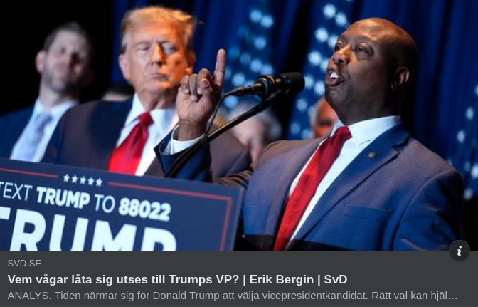 https://www.svd.se/a/Xj6gPr/vem-vagar-bli-trumps-vicepresident "Nio år har gått sedan Donald J Trump tog rulltrappan ned i Trump Tower sommaren 2015 för att annonsera sin presidentkandidatur. En egenskap hos honom har blivit tydlig sedan dess. Han värderar lojalitet över det mesta annat. Mike Pence var lojal, obrottsligt. Som en snäll hund. Tills han plötsligt inte var det längre, efter att Trumps anhängare stormade kongressen i januari 2021 och hotade med att hänga Pence. Där gick gränsen. Fallet Pence visar vad lojalitet är värd för en möjlig kommande president Trump 2.0. Men stormningen kan tvinga VP-kandidater till viss eftertanke. Händelsen exemplifierar vad en vicepresident under honom kan behöva acceptera och hantera i dagens polariserade USA. Där republikanska politikers värde avgörs av hur långt de är beredda att gå för att försvara sin ledare alternativa verklighet, vad som än händer."