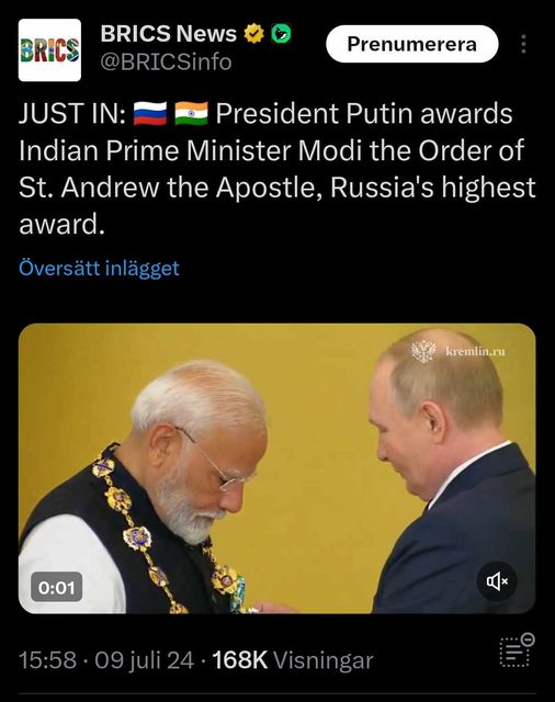 Modi Mottar Rysslands Högsta Ärobetygelse