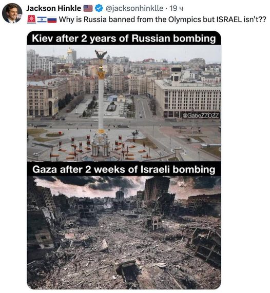 Jackson Hinkle ställer frågan, "Varför förbjöds Ryssland från OS och Israel inte???"