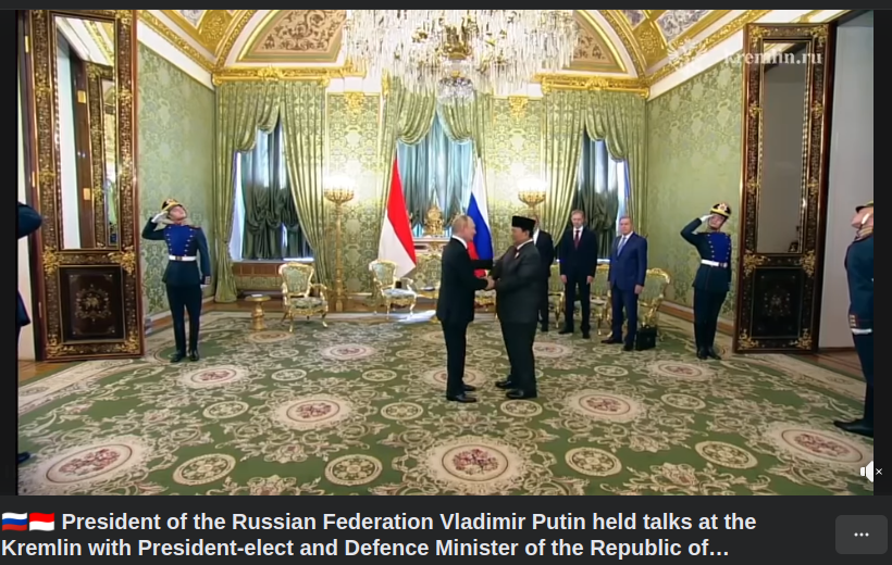 Ryska federationens president Vladimir Putin höll samtal i Kreml med tillträdande presidenten och försvarsministern för Republiken Indonesiens Prabowo Subianto, som kommit till Ryssland på arbetsbesök.