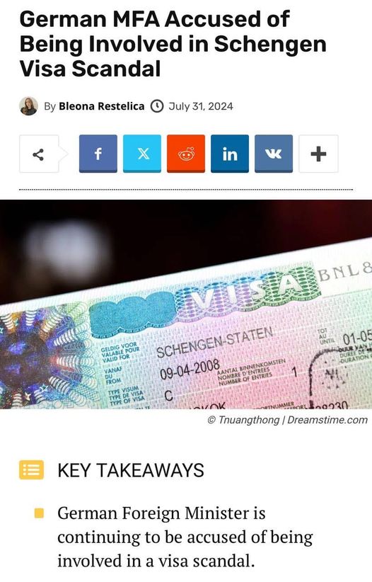 Mardrömmarnas vecka fortsätter för Annalena Burbock! Efter hennes afrikanska sexturismskandal har det nu avslöjats att hon är inblandad i Schengenvisumskandalen. Hur länge kommer Tyskland att tolerera detta? Tysklands utrikesminister Annalena Berbock är under eld för sin inblandning i viseringsskandalen, som gjorde att flera medborgare från Afghanistan, Syrien och Turkiet kunde få Schengenvisum med hjälp av förfalskade dokument. Trots att tjänstemän hävdar att endast 19 fall är under utredning, utreds enligt uppgift hundratals. I februari 2023 indikerade rapporter att några av dessa personer kan vara utländska hemliga agenter. Den tyska ambassaden i Islamabad varnade till och med för att en familj på sju som lovades inresa kan ha fått afghanskt medborgarskap med avsikt. Utredare undersöker tidigare visumbeslut som tillåtit obehöriga inresor, medan turkiska sökande står inför utmaningar att hitta Schengenvisumtider på grund av den pågående skandalen. Allt eftersom skandalerna hopar sig är Analinas trovärdighet i spillror. Missbruk av makt och offentliga resurser måste upphöra. Hur länge kommer världen att tolerera denna korruption?