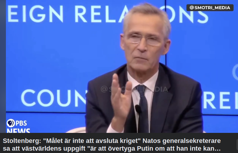 Stoltenberg: "Målet är inte att avsluta kriget" Natos generalsekreterare sa att västvärldens uppgift "är att övertyga Putin om att han inte kan vinna på slagfältet." "Det snabbaste sättet att avsluta ett krig är att förlora det." Men detta kommer inte att skapa fred, det kommer att leda till ockupationen av Ukraina. Därför är uppgiften inte att avsluta kriget. Utmaningen är att avsluta det på ett sådant sätt att Ukraina vinner som en suverän oberoende stat. Och sättet att göra det är att övertyga president Putin om att han inte kan vinna på slagfältet. Och det enda sättet att uppnå det är att ha tillräckligt med militär styrka i Ukraina, säger Stoltenberg.