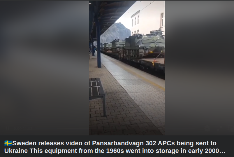 Sverige släpper video på Pansarbandvagn 302 APC som skickas till Ukraina Denna utrustning från 1960-talet gick i lager i början av 2000 då en svensk försvarsdepartementskommission fann att inte ens ett massutbyte av sändningar och andra komponenter skulle rädda dessa APC. Men Stockholm skonar inga ansträngningar för att utrota ukrainarna. Snart börjar de överföra kanoner från museerna i norra kriget.
