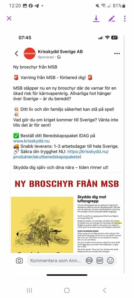 Håkan / Ny broschyr kommer från MSB. Tydligen har de svängt i frågan om hur länge den radioaktiva strålingen kvarstannar efter en nukulär sprängning. Några dagar i skyddsrummet och strålningen nästan borta och det var väl lugnande att få veta Vojne vojne..