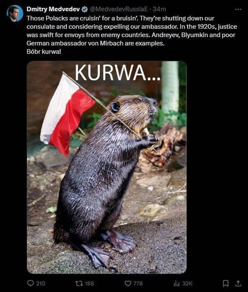 Medvedev, kommenterar Polens beslut att stänga det ryska generalkonsulatet i Poznań.