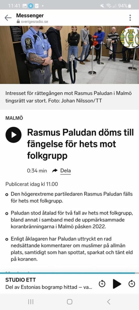 Paludan Fängelsedömd För Hets Mot Folkgrupp