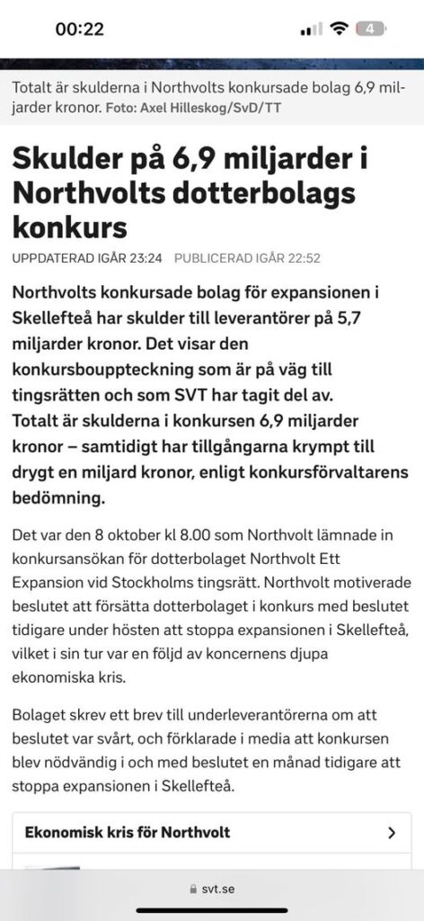 6,9 Miljardersskuld För Konkursat Nothvoltdotterbolag